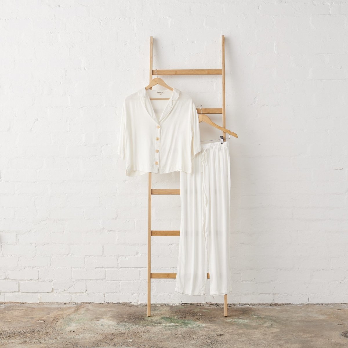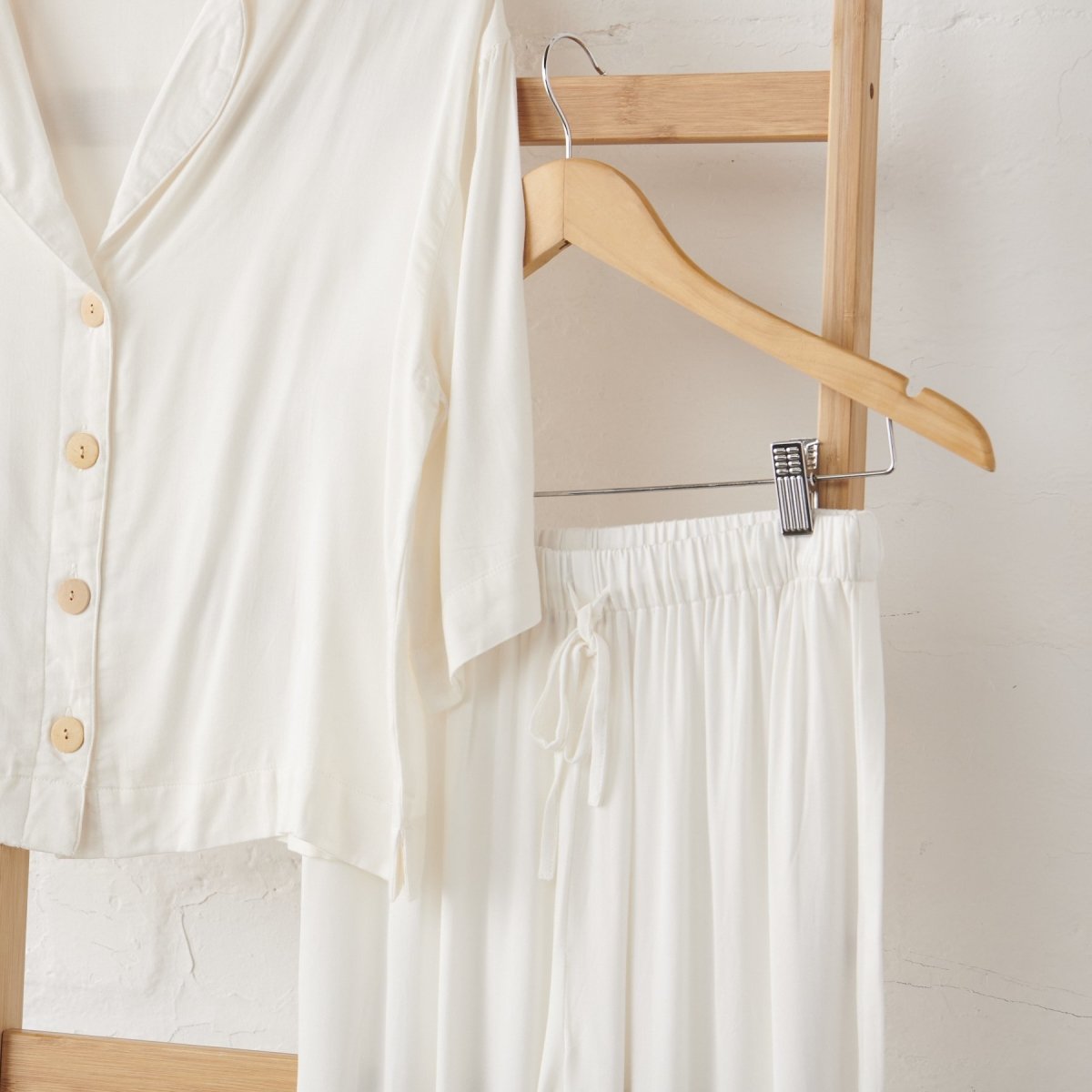 Bamboo Pyjamas - Crop Button Up + Pant Set in White
